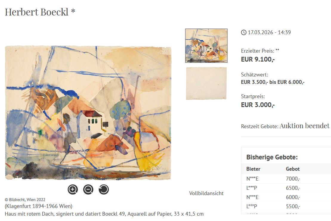 | 17.03.2026 | Aquarell "Haus mit rotem Dach", im Dorotheum |