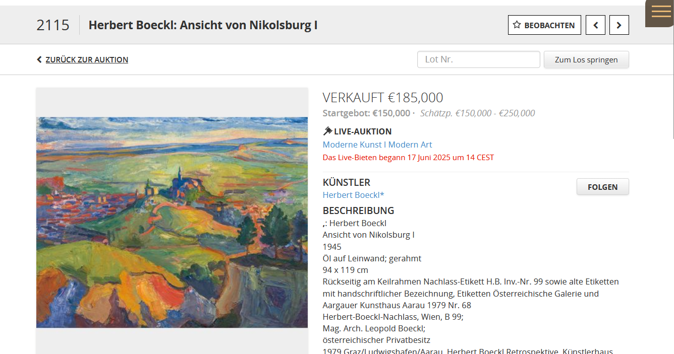 | 17.06.2025 | Gemälde "Ansicht von Nikolsburg I", im Auktionshaus Kinsky |